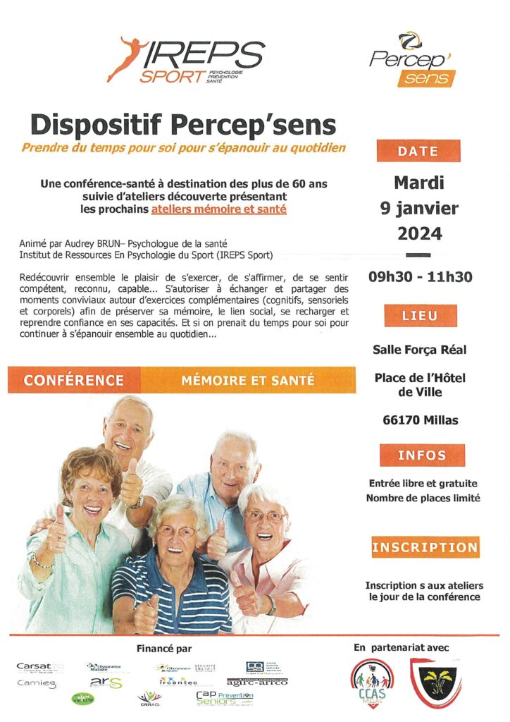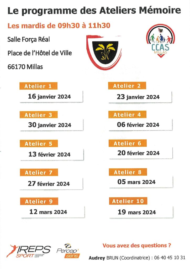 Le CCAS et La Ville de Millas vous propose en Collaboration avec l’institut de ressources en psychologie du sport (IREPS Sport) des ateliers Mémoire et Santé.