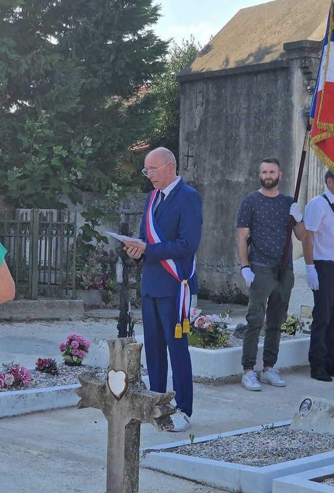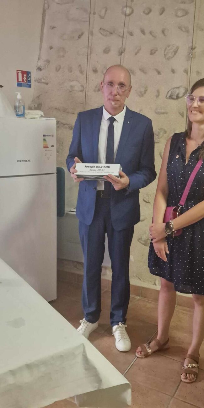 Monsieur Jérôme PARRILLA PAGÈS a profité de ce moment pour remettre à Monsieur le Maire, les plaques des noms des soldats tombés pour la France. Cela finalisera la restauration du carré Militaire.